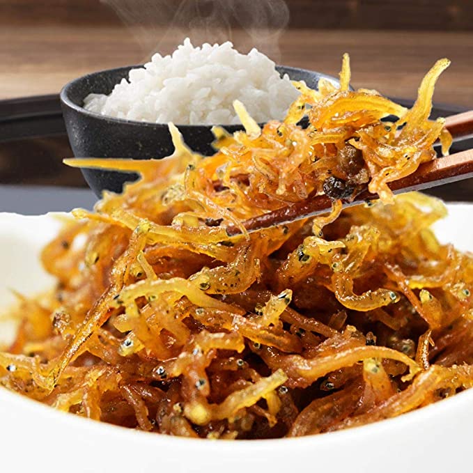 津津有味的美食,用上等醬汁熬煮到收乾並滲入到魚肉中,經過多道繁雜的程序,緊緊鎖住甜味,所以連骨頭都可以吞下去! 味道甘甜、酥脆爽口、風味獨特、愈嚼愈香甜,停不下來的鮮甜滋味!非常適合大人、小孩拌飯或當作零嘴食用,更是絕妙的下酒佳餚! 含豐富蛋白質、鈣,好健康,活力滿點。