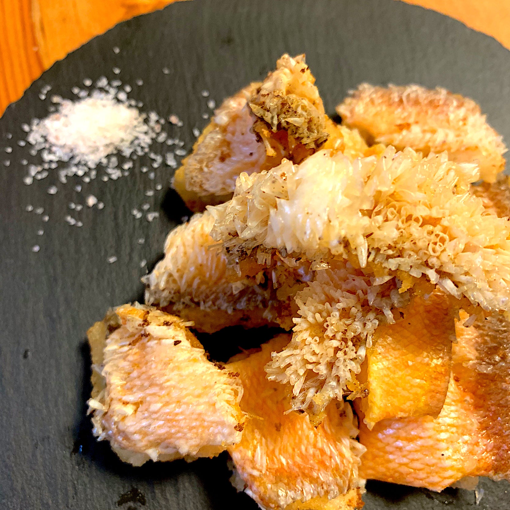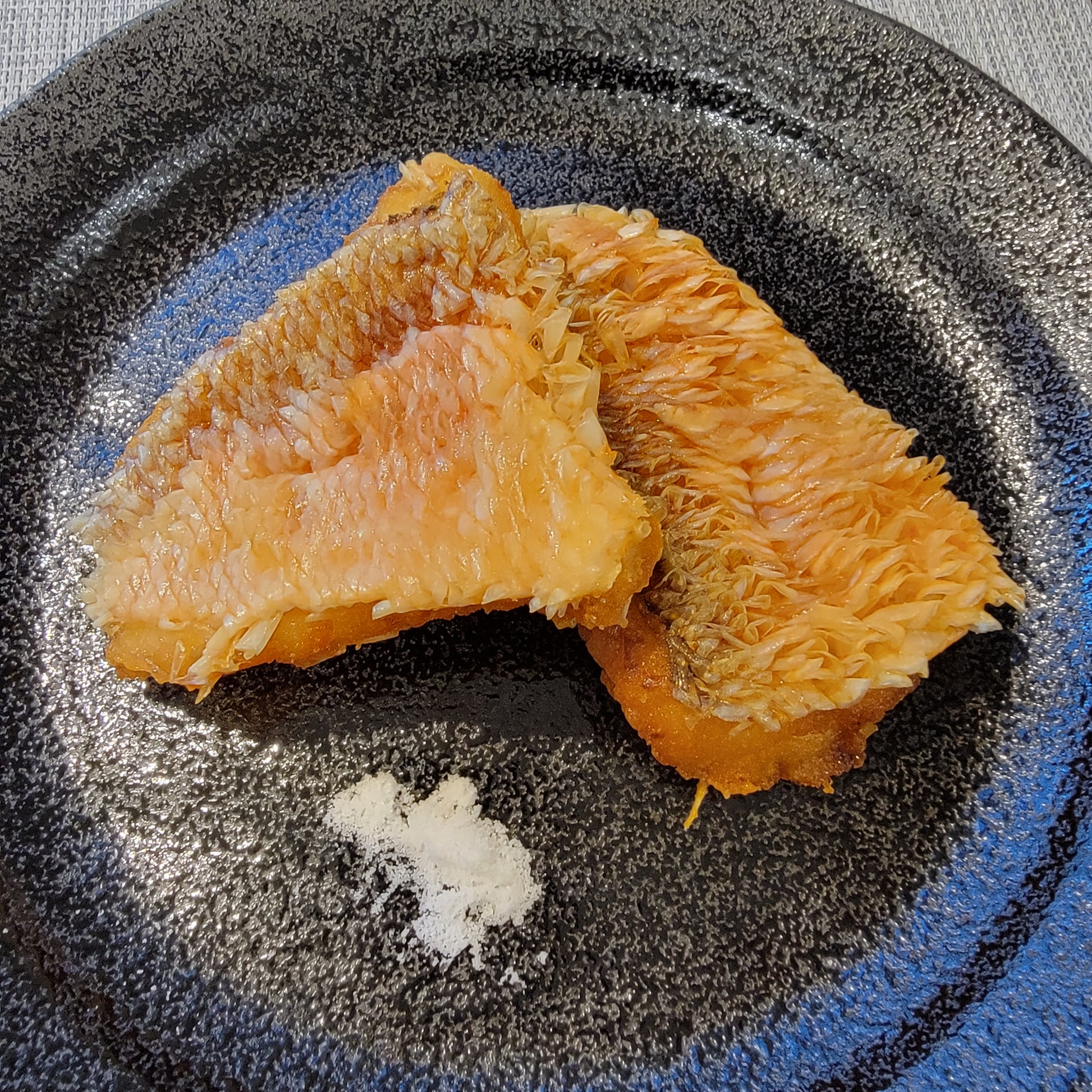 對很多日料吃貨來說,吃烤甘鯛的妙處不僅在品味魚肉之鮮,更重要的是魚鱗之香脆,二者輝映才是美味的交響。強調甘鯛帶鱗烤制的料理也稱立鱗燒(うろこ焼き),或者松笠燒(松笠焼き)。