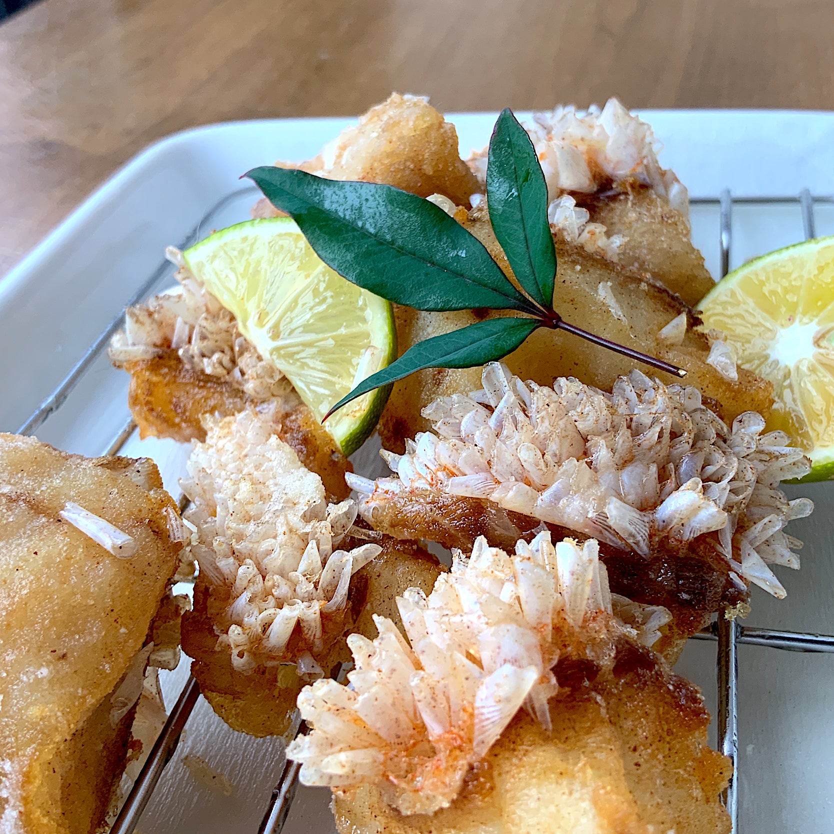 A popular recipe uses Japanese technique called "Matsukasa-Yaki", or more literally "pine-cone baking". The traditional method is to grill the fish (amadai) at a high temperature from afar. The delicate scales will cook gradually, resulting in a crisp texture.