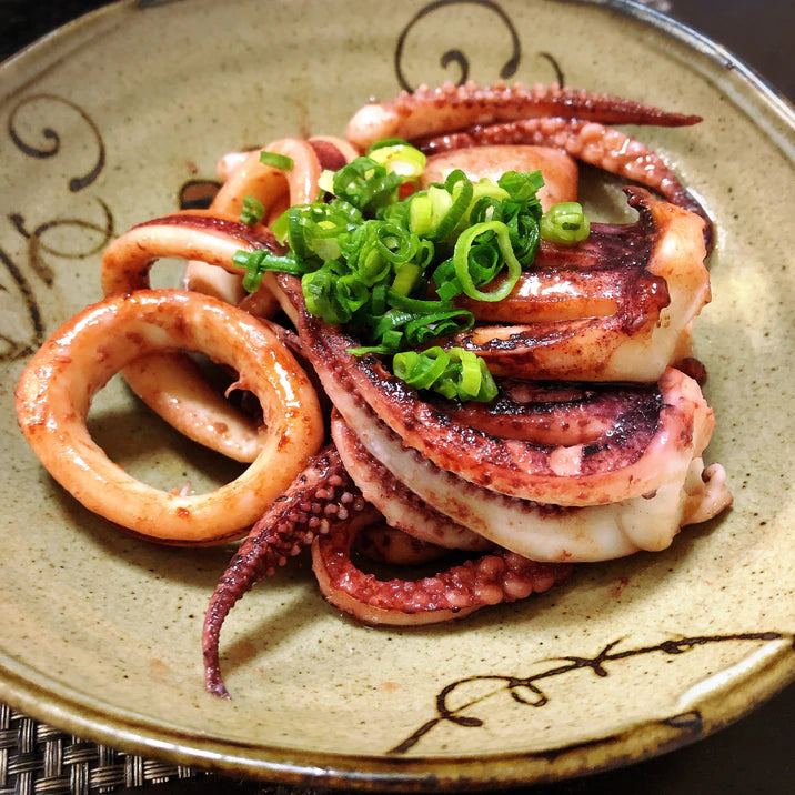 Kensaki Ika (剣先イカ), or swordtip squid, is a prized ingredient in Japanese cuisine known for its firm texture and rich sweetness. Its slim, pointed body gives it a distinct appearance, and its versatile flavor makes it ideal for both raw and cooked dishes. Kensaki Ika is often considered a premium ingredient for sushi and sashimi, where its natural sweetness shines.