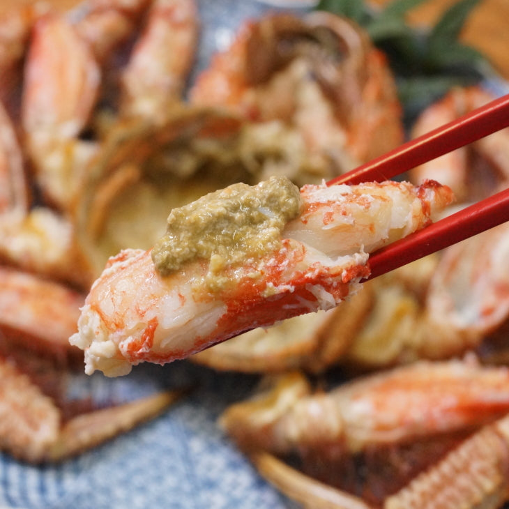 We recommend to boil in salt water or grilled: The meat of the crab tastes sweet, and the kanimiso (crab guts) can be eaten as well.
