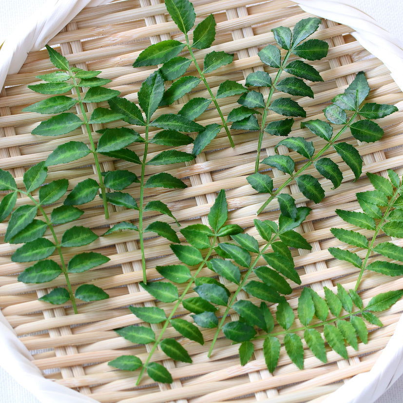 Kinome leaves provide a wonderful minty flavor to culinary dishes with lingering heat. To release their perfume, the leaves need to be chewed, or broken up somehow, otherwise you won’t taste them at all. This farm-fresh crop comes as a cluster of small, serrated edible leaves, shiny and deep green in hue, and a tender texture. These deliciously edible leaves are actually a Japanese herb from the prickly ash/Szechuan peppercorn tree. The flavor of the leaves is powerful, but delicate at the same time.
