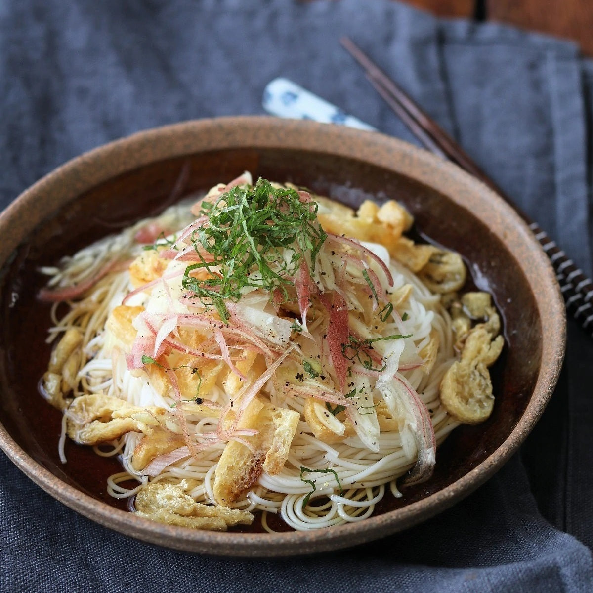 茗荷是日本料理中常見的食材,日本主婦們會用它來泡製漬物、做壽司、沙律……很多時我們看到茗荷都成了配菜,但其香氣、口感和營養價值絕對當得成主角,豆腐沙律上放上一把來調味,就是日本人的家常菜,配搭還有很多花款。